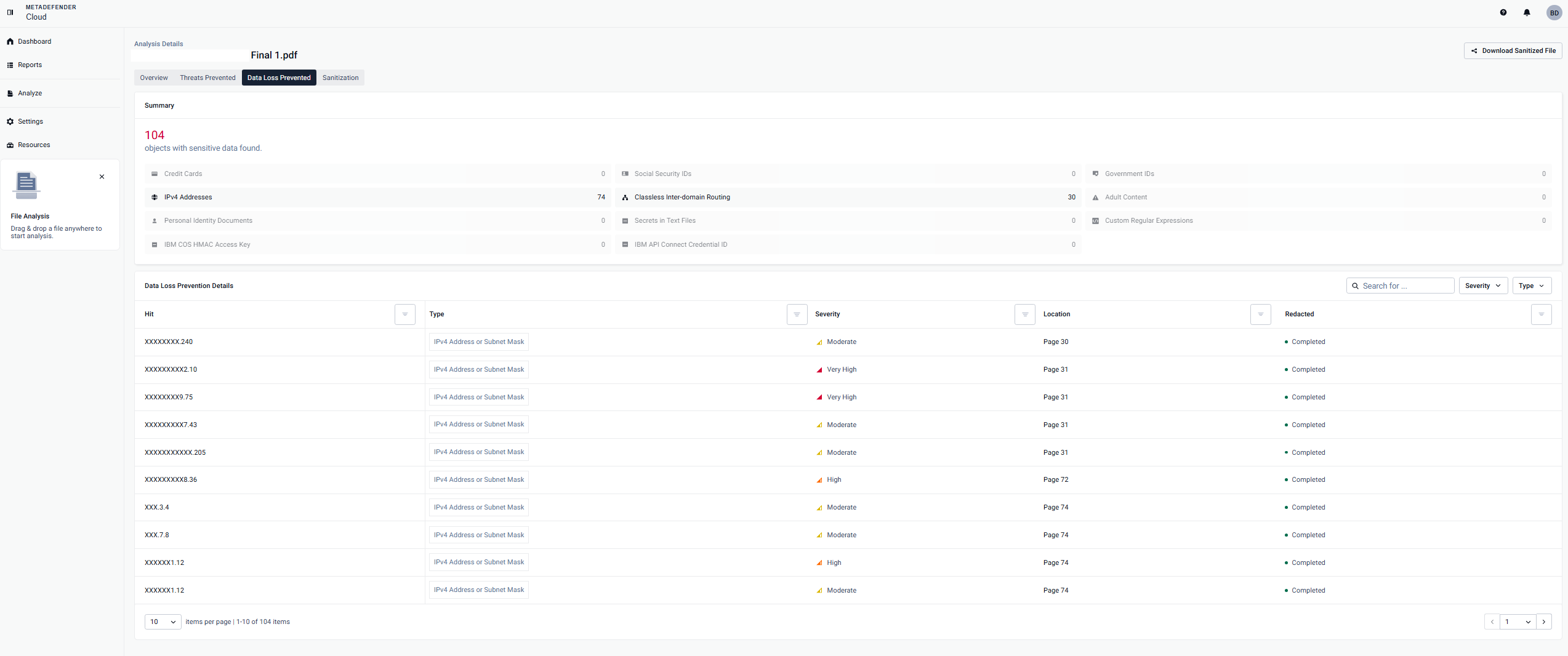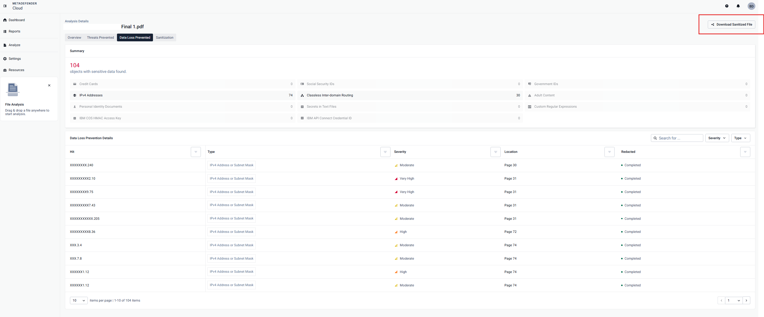 1. You have the option to download the sanitized version, where all sensitive information rated as Medium Certainty and above has been redacted.