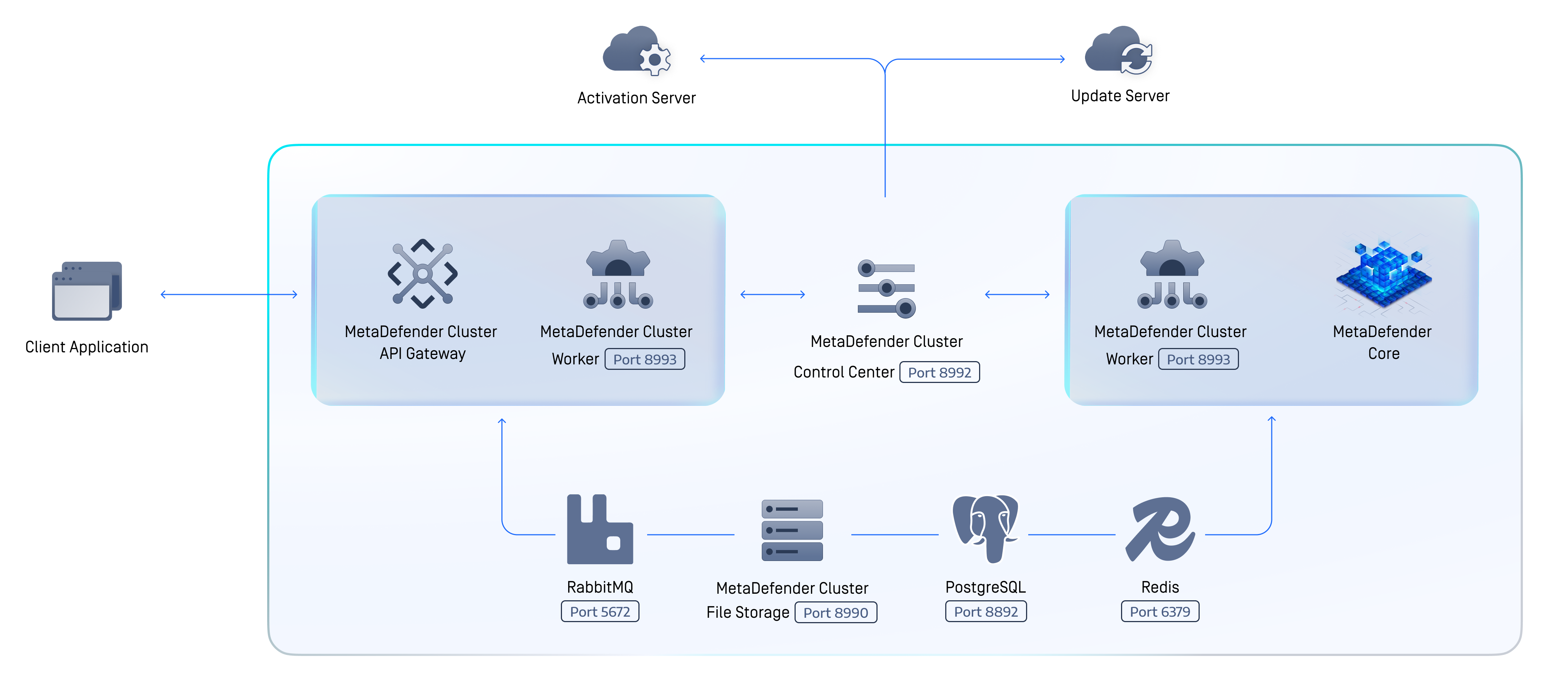 The MetaDefender Cluster (MD Cluster) is an approach to serve very large deployments while offering improved auto-scaling, high availability and fault tolerant capabilities for MetaDefender Core.