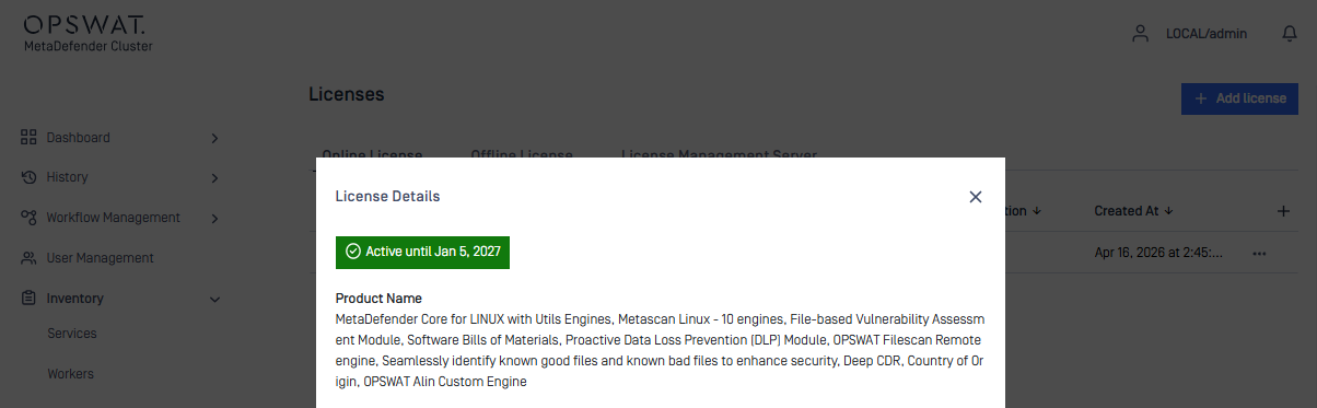Inventory> License - Follow the instructions to activate the product according to your license type.