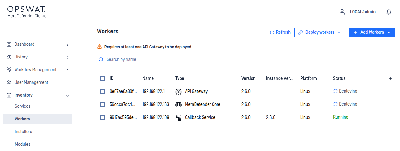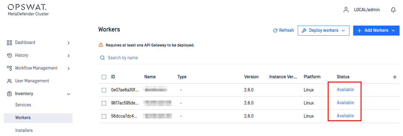 Inventory>Workers. - Verify that the installed workers are showing as