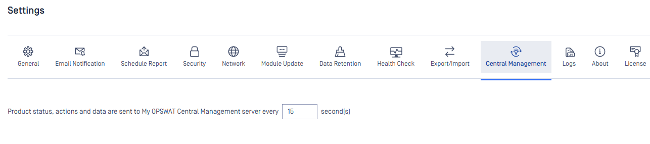 Administrator can adjust the synchronization interval between MetaDefender Core (MD Core) and My OPSWAT Central Management (MOCM) in order to reduce aggressive traffic to MOCM and lower resource usage on MD Core.