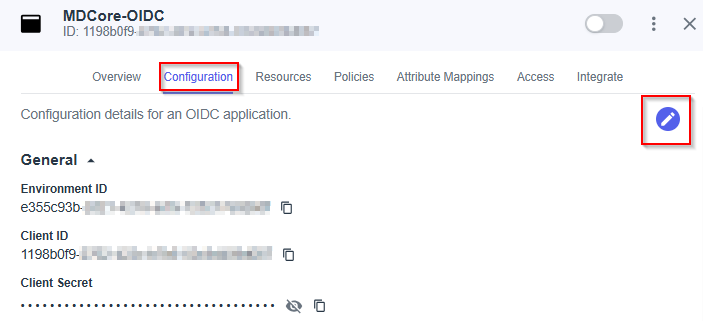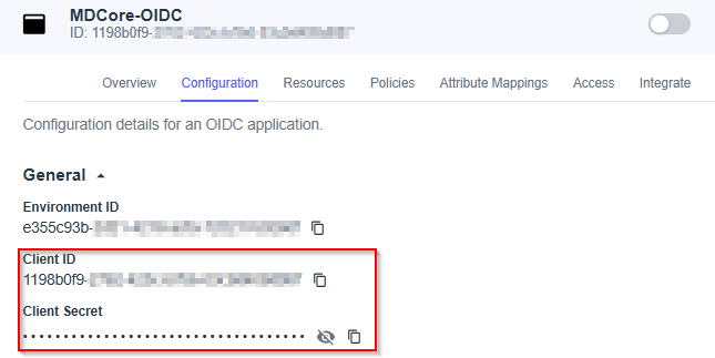 - Select Configuration tab, expand General section, navigate to Client ID and Client Secret, copy and store them in client_id and client_secret.