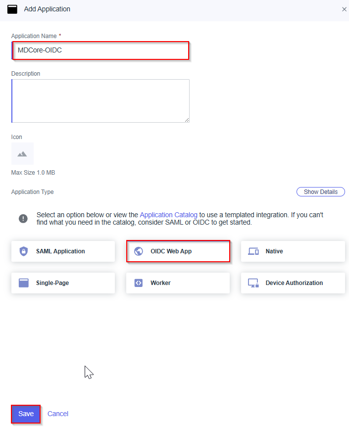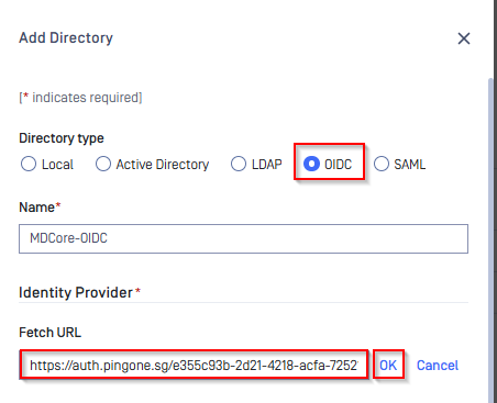 Add Directorypage, chooseOIDCinDirectory Type, fillNamefor the new directory, MDCore-OIDC for example - Fill