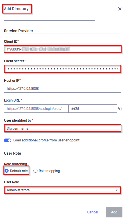 Service Provider, paste client_id and client_secret to boxes underClient IDandClient secretrespectively - Fill ${given_name} in the box under