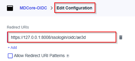 Edit Configurationpage, navigate toRedirect URIsand paste redirect_uri to the box below, then hitSave