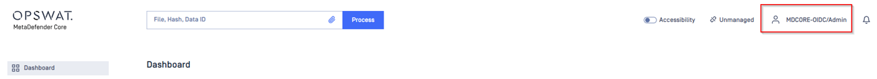 - If everything goes right, MDCore dashboard is shown with user identity set at the top right corner