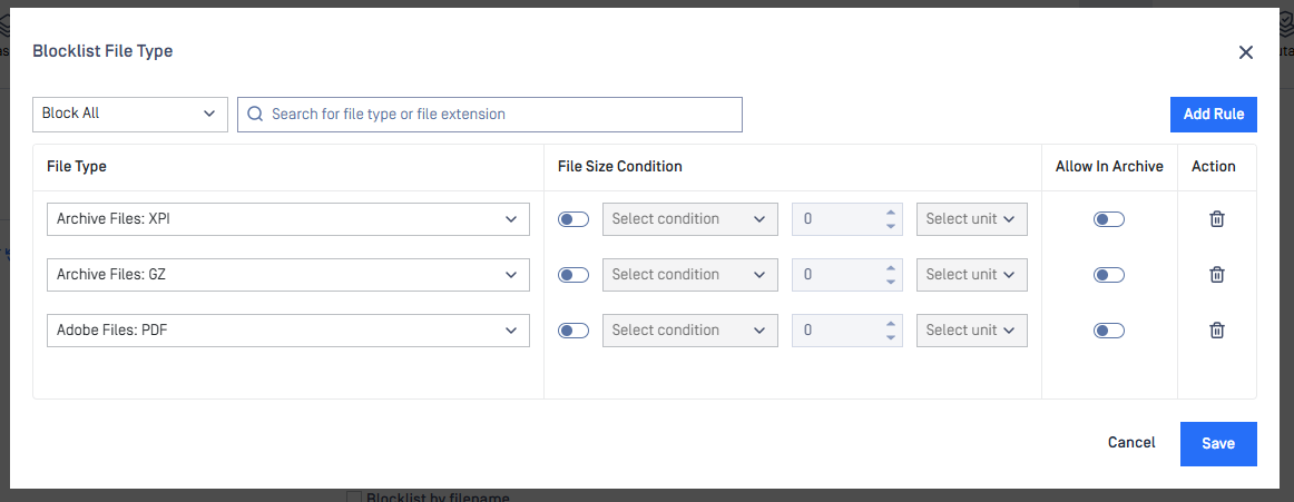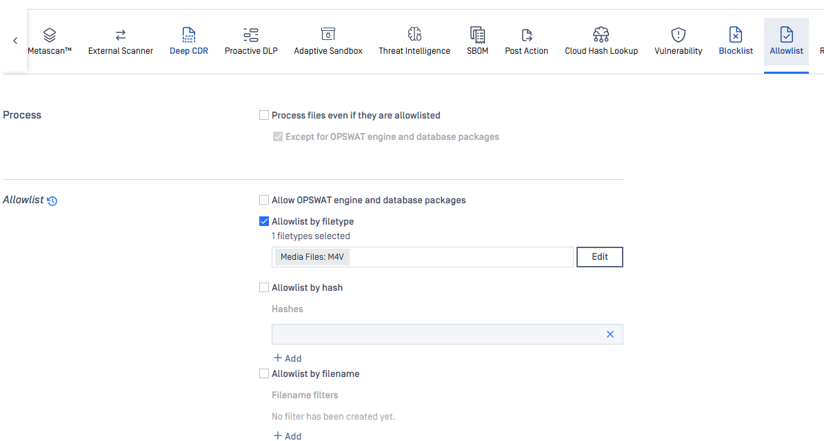Since version 5.18.0, MetaDefender Core has introduced a refreshed and modernized interface for managing Blocklist and Allowlist by file type.