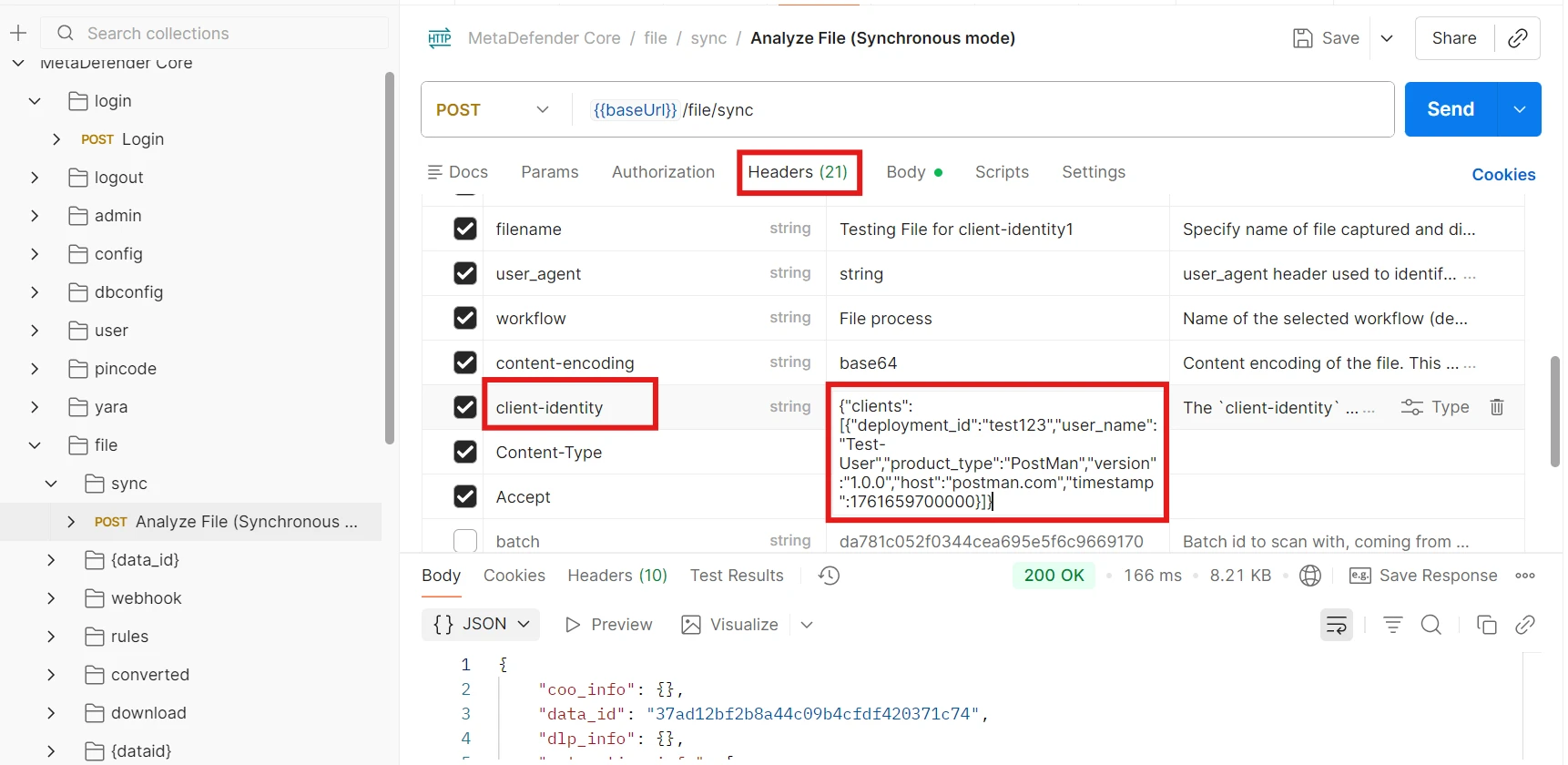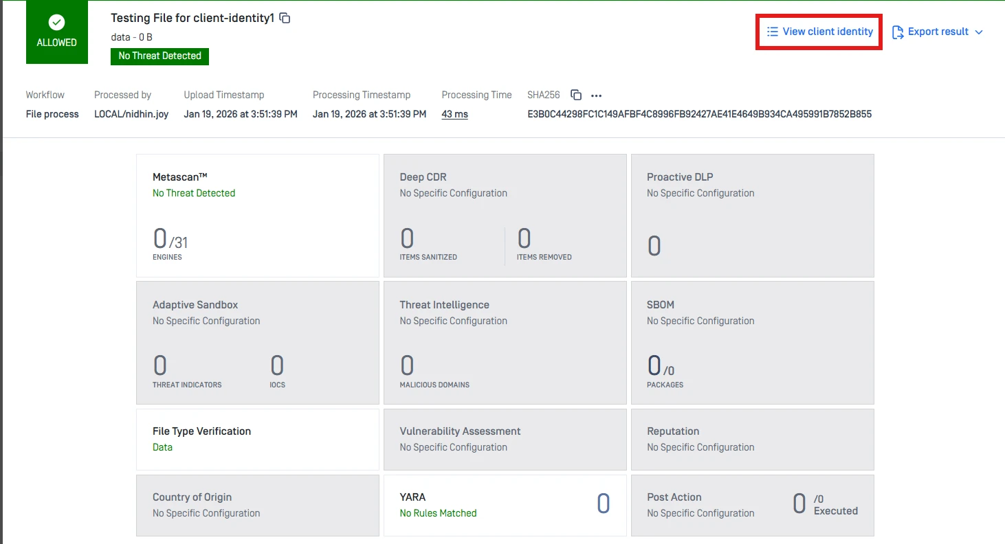 The Client Identity capability in MetaDefender Core (MD Core) lets integrators attach source/client metadata to scan requests. This allows administrators to identify which client system or integration submitted a file for scanning and improves traceability in multi-client deployments.