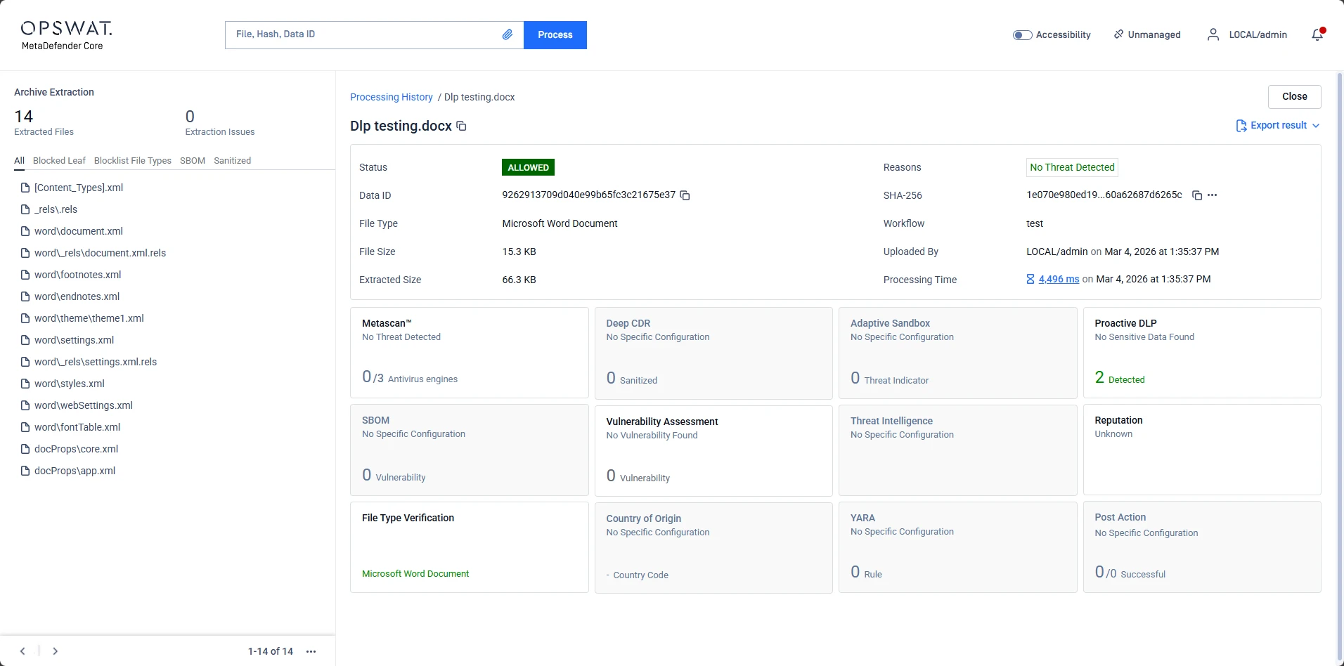 Looking at the example file Dlp testing.docx:
