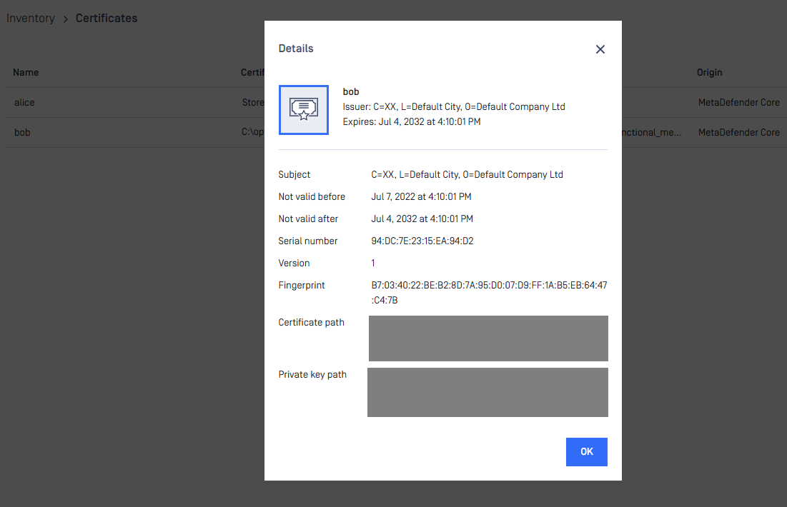 - MetaDefender Core to calculate the signature of scan result using the selected private key.