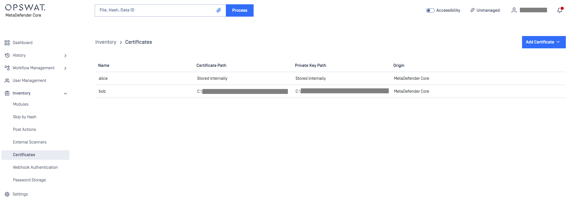 While leveraging webhook on MetaDefender Core, the callback connection stays at un-secured by default. To harden the security, MetaDefender Core supports a mutual authentication mode between the server (MetaDefender Core) and client (where the callback is sent to), and prevents the man-in-the-middle attack (scan results could be possibly altered unauthorizedly).