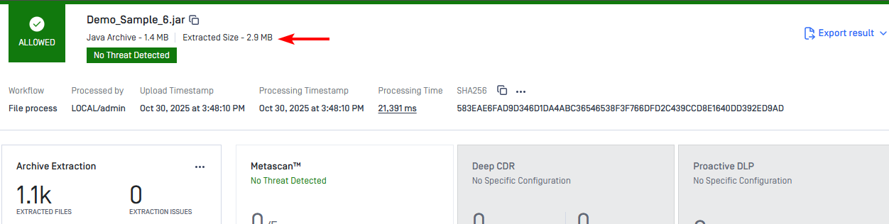 3) YARA Processing Time is Visible in Executive Reports: The Executive Report and PDF export now display YARA processing time, providing transparency into how long YARA scans take during file analysis.