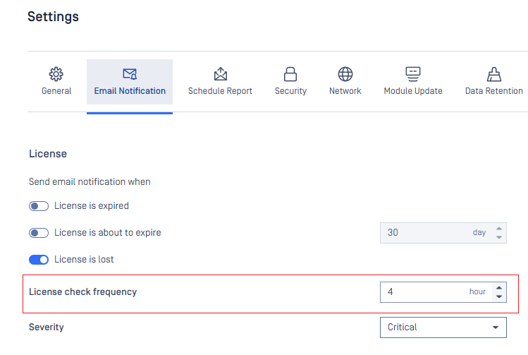 Users can configure how often they receive email notifications about license expiration and related events, helping to reduce alert fatigue and avoid multiple reminders in a single day.