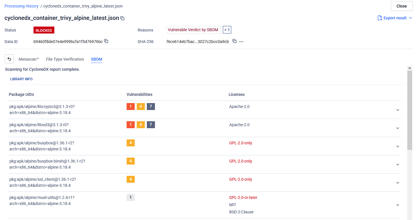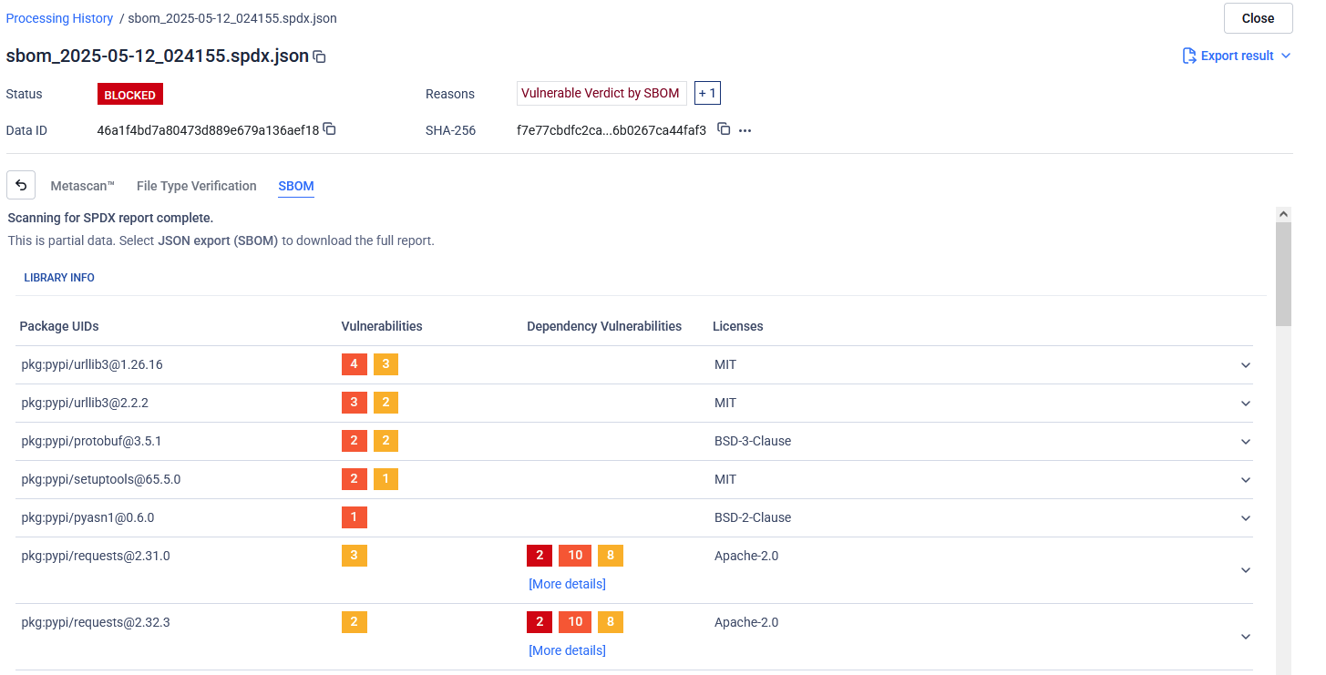 In the SBOM area, CycloneDX is typically used for vulnerability tracking, whereas SPDX focuses more on software license information. The SBOM module can take these reports, then adding any missing components such as CVE details, license details, and library information. This process produces a fully enriched SBOM that combines both security and compliance insights for more accurate analysis and reporting.