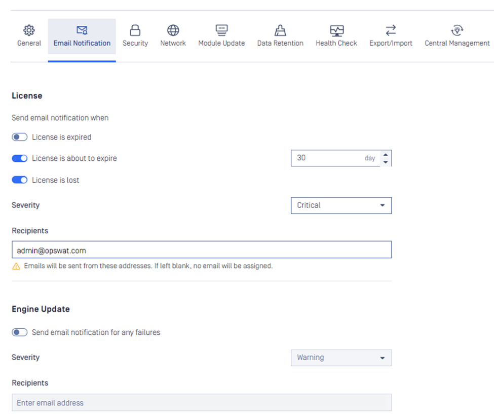 | Continuous support for My OPSWAT integration | Now you can manage and configure "Post Actions", "External Scanners", "Webhook Authentication" and "Health Check" from My OPSWAT. |