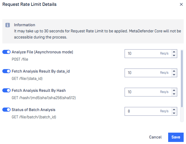 | Advanced rate limiting configuration via web console | Administrators can now configure rate limiting for various REST APIs directly through the web console. For more details, refer to Request rate limit configuration and Request rate limit test scenarios.
