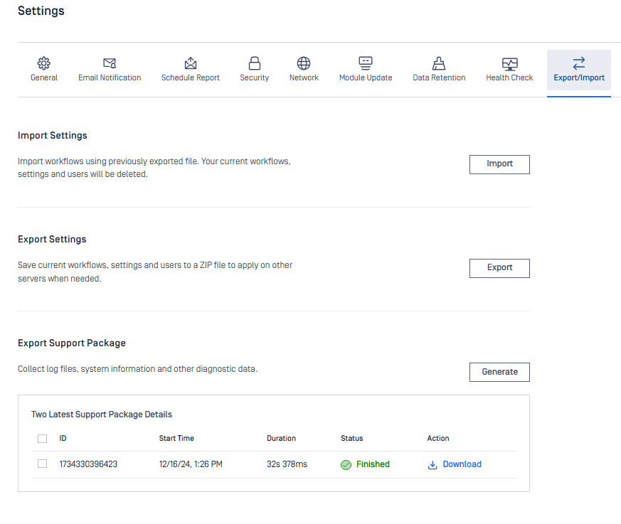 | Generate support package on web console | Administrators now can directly generate and download support packages right on web console.