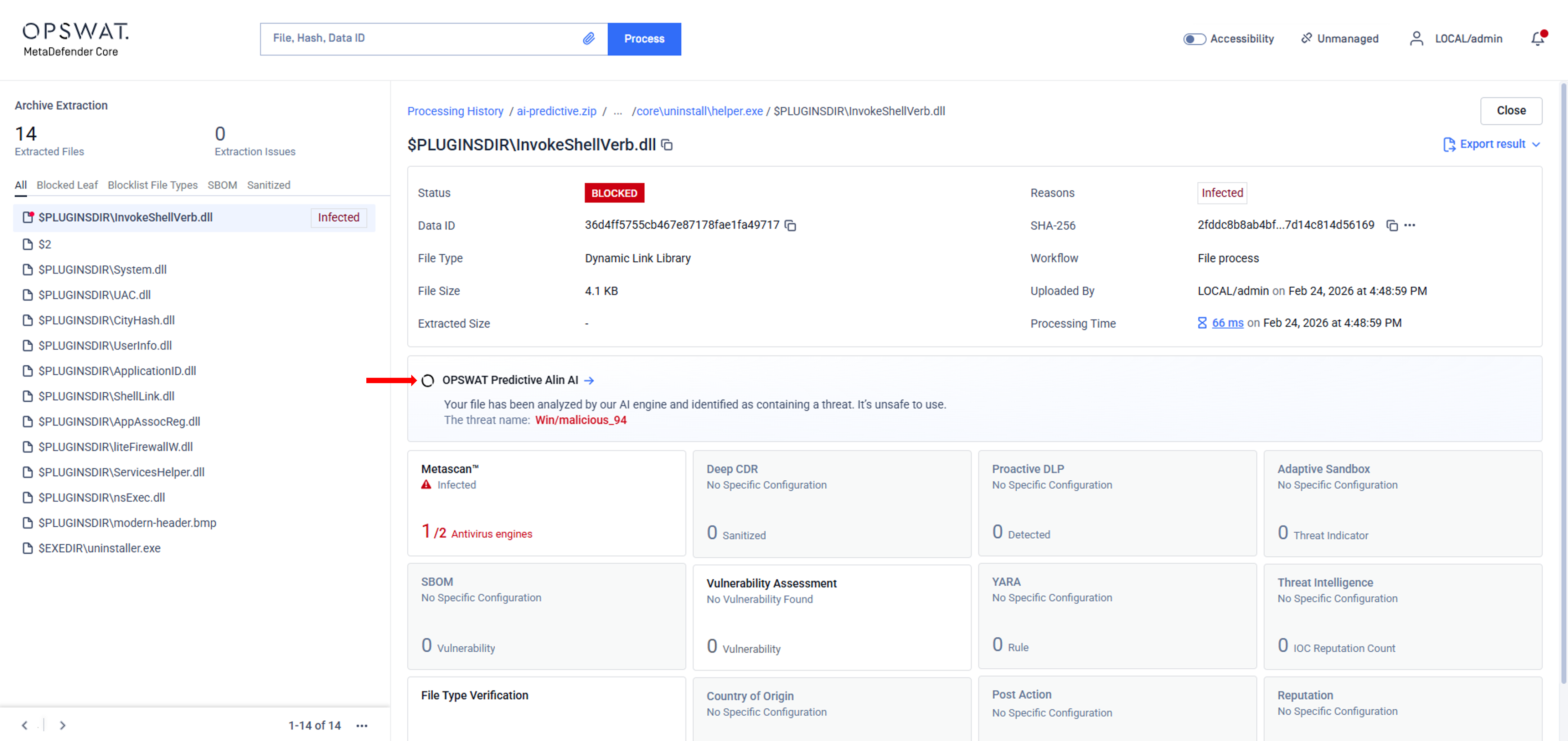 MetaDefender Core introduces a brand new technology called OPSWAT Predictilopve Alin AI that works alongside Metascan to improve threat detection depth and accuracy.