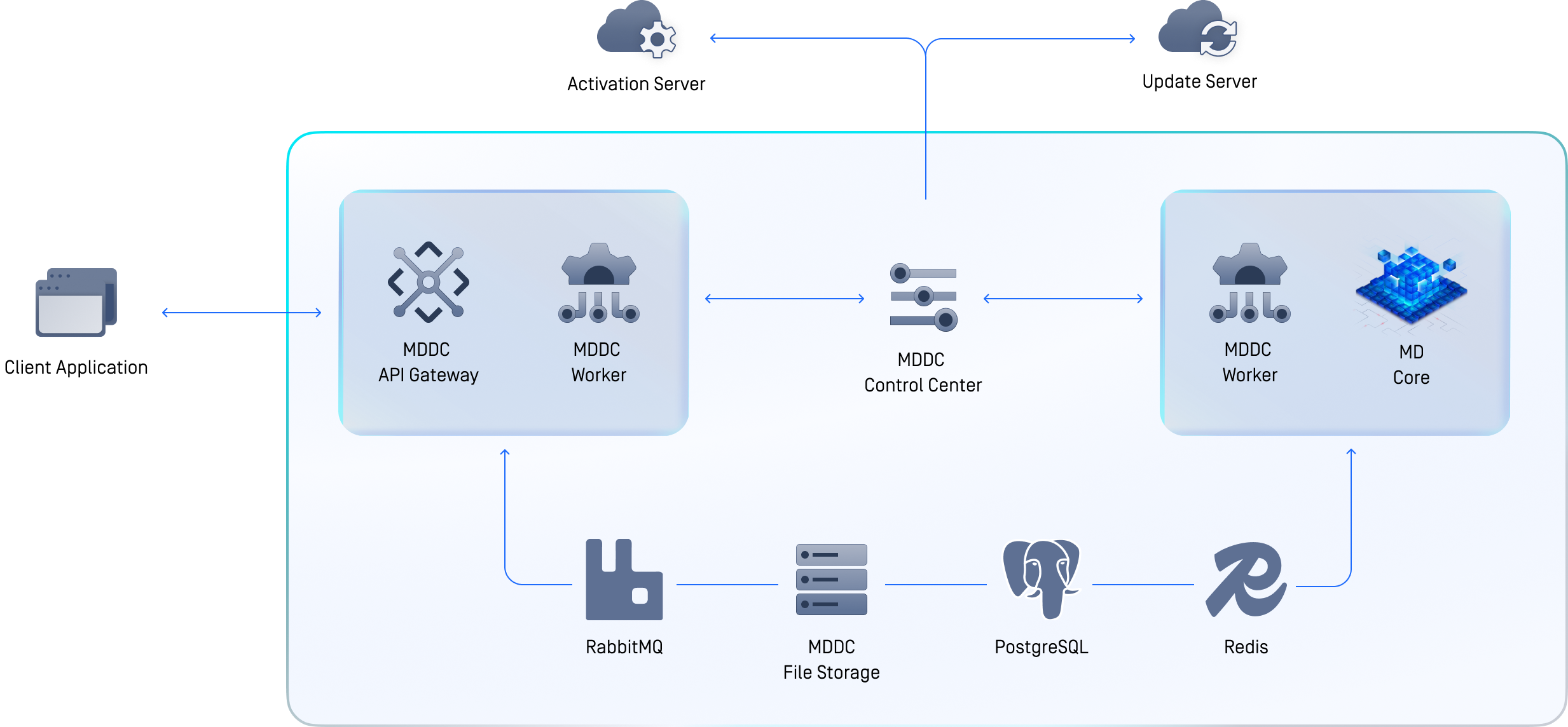 | MDDC File Storage | Securely store and share files asynchronously across components in the cluster. The component manages the duration and duplication of files. |