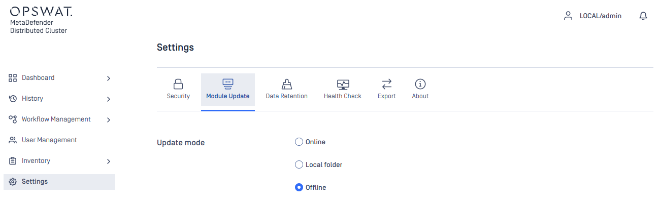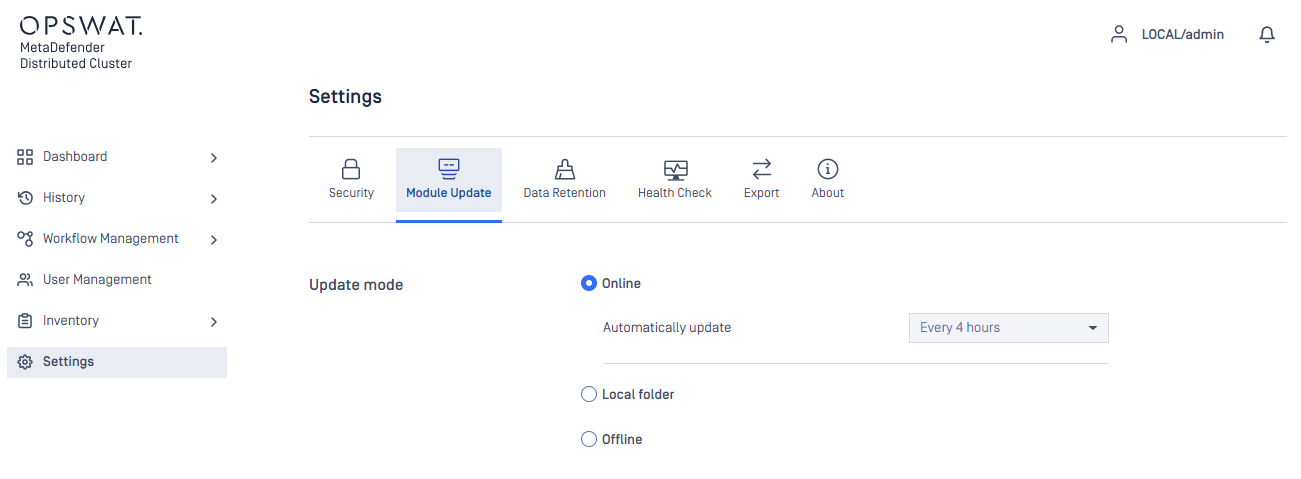 This section will allow the system administrator to select one of three update modes offered by MetaDefender Distributed Cluster (MDDC).