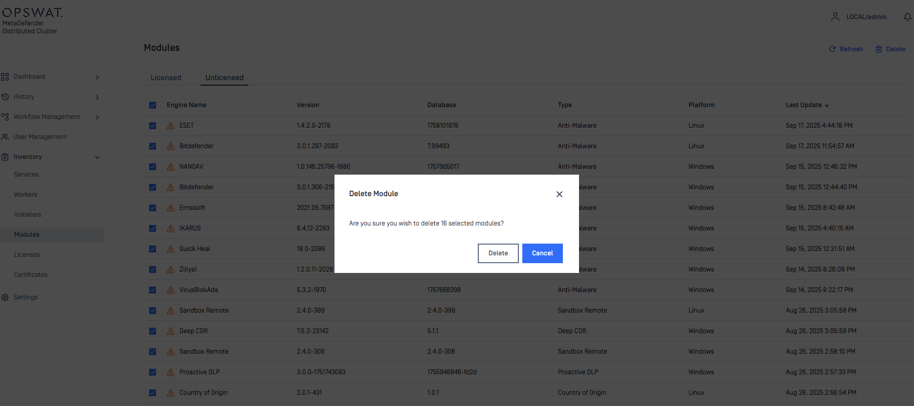 Abandoned module packages can be selected and removed on web console of Control Center.