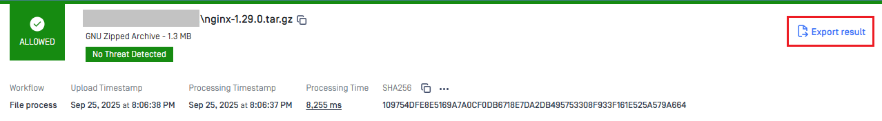 From MetaDefender Distributed Cluster (MDDC) Control Center, users can export scan result in JSON format.