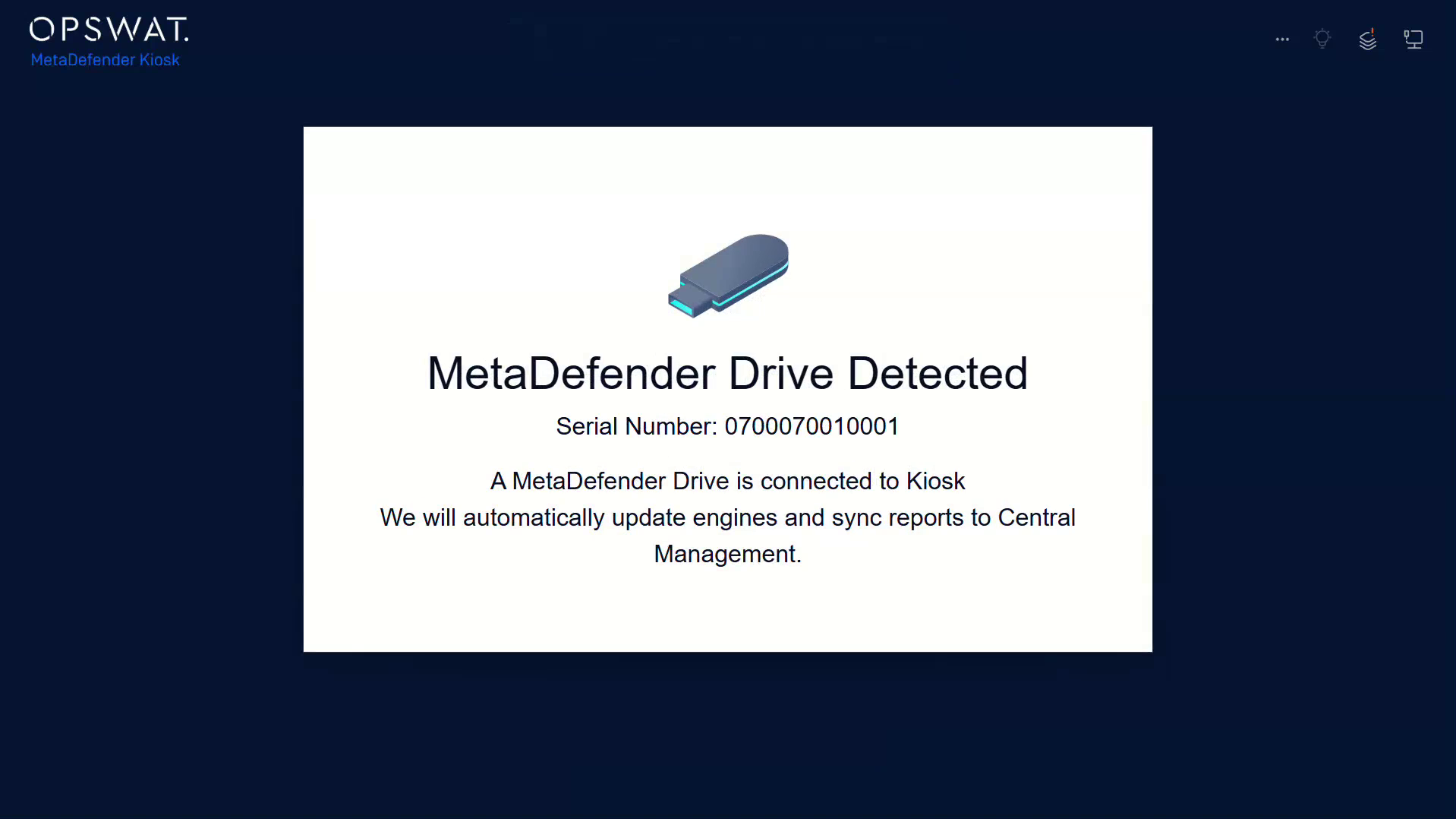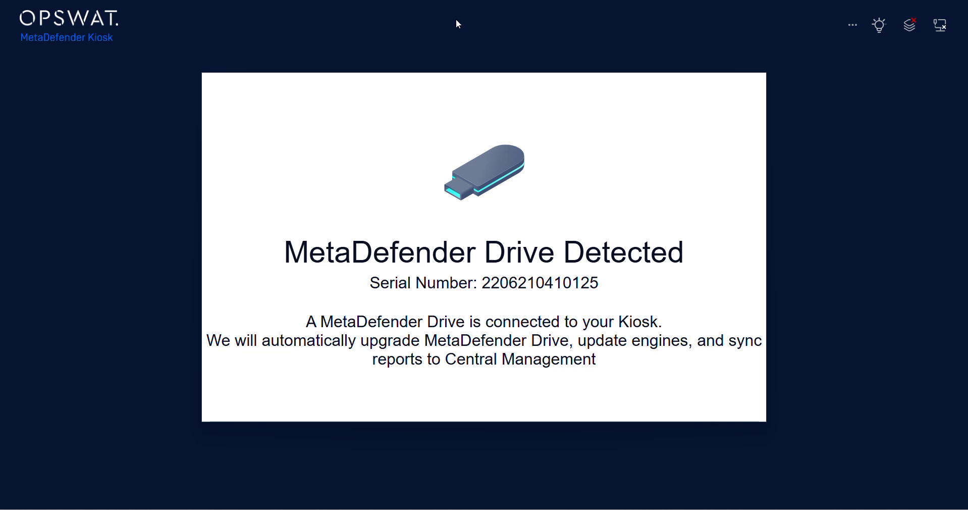 - On a running Kiosk (that has the integration enabled), insert MetaDefender Drive (that has been enrolled)
