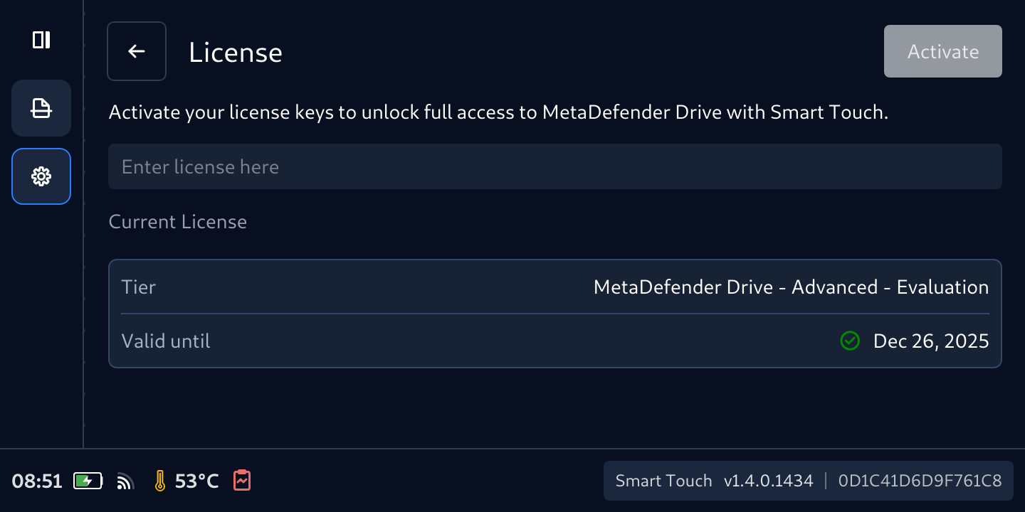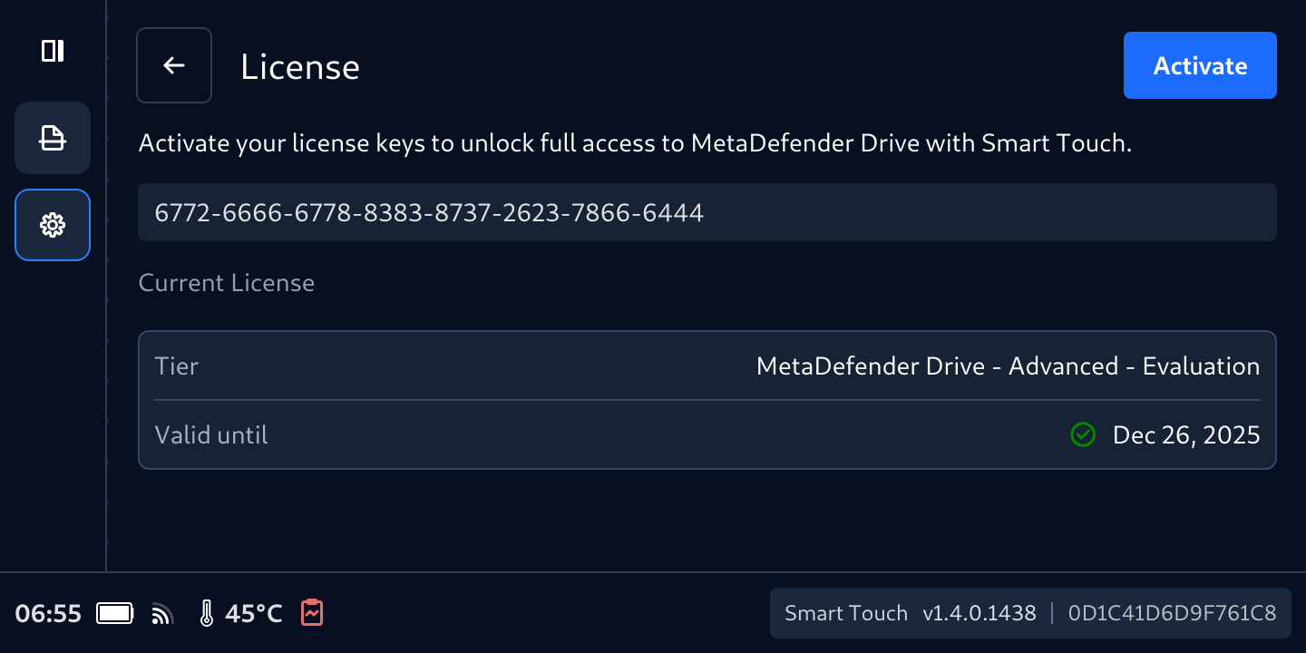 - MetaDefender Drive with Smart Touch will validate the input license within 1 or 2 minutes
