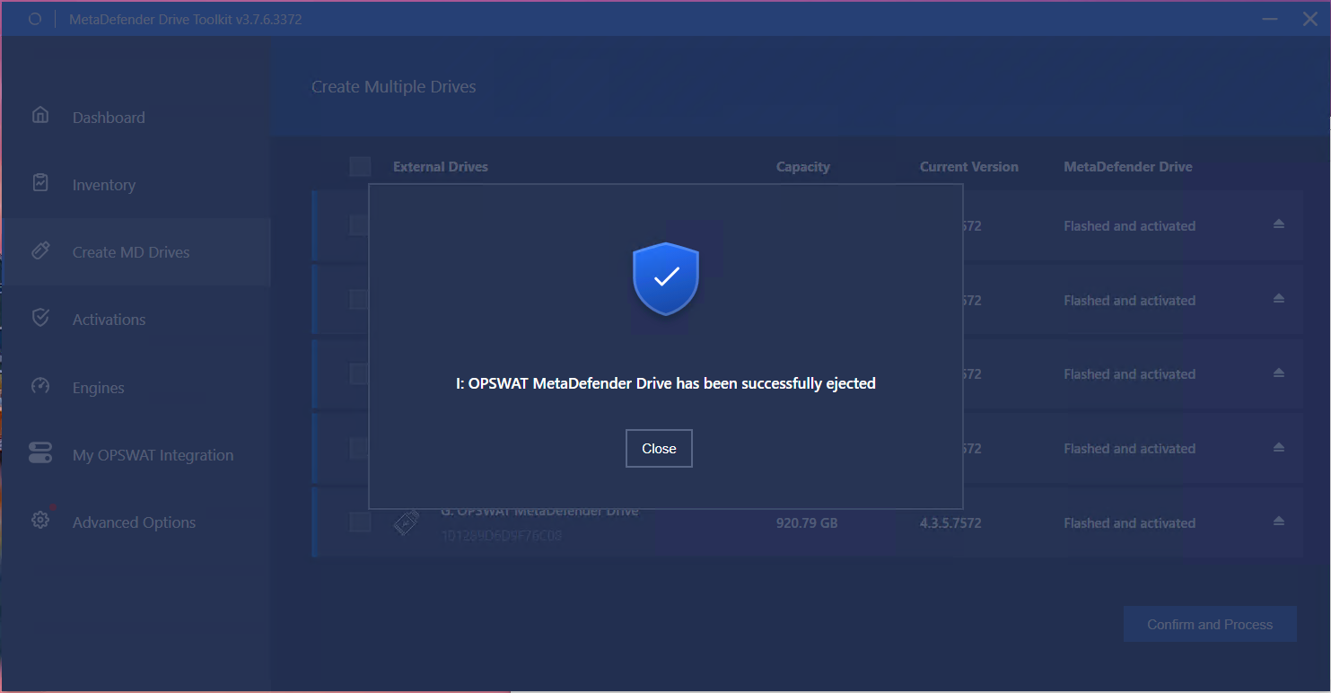 - Click Yes to safely eject the selected MetaDefender Drive.