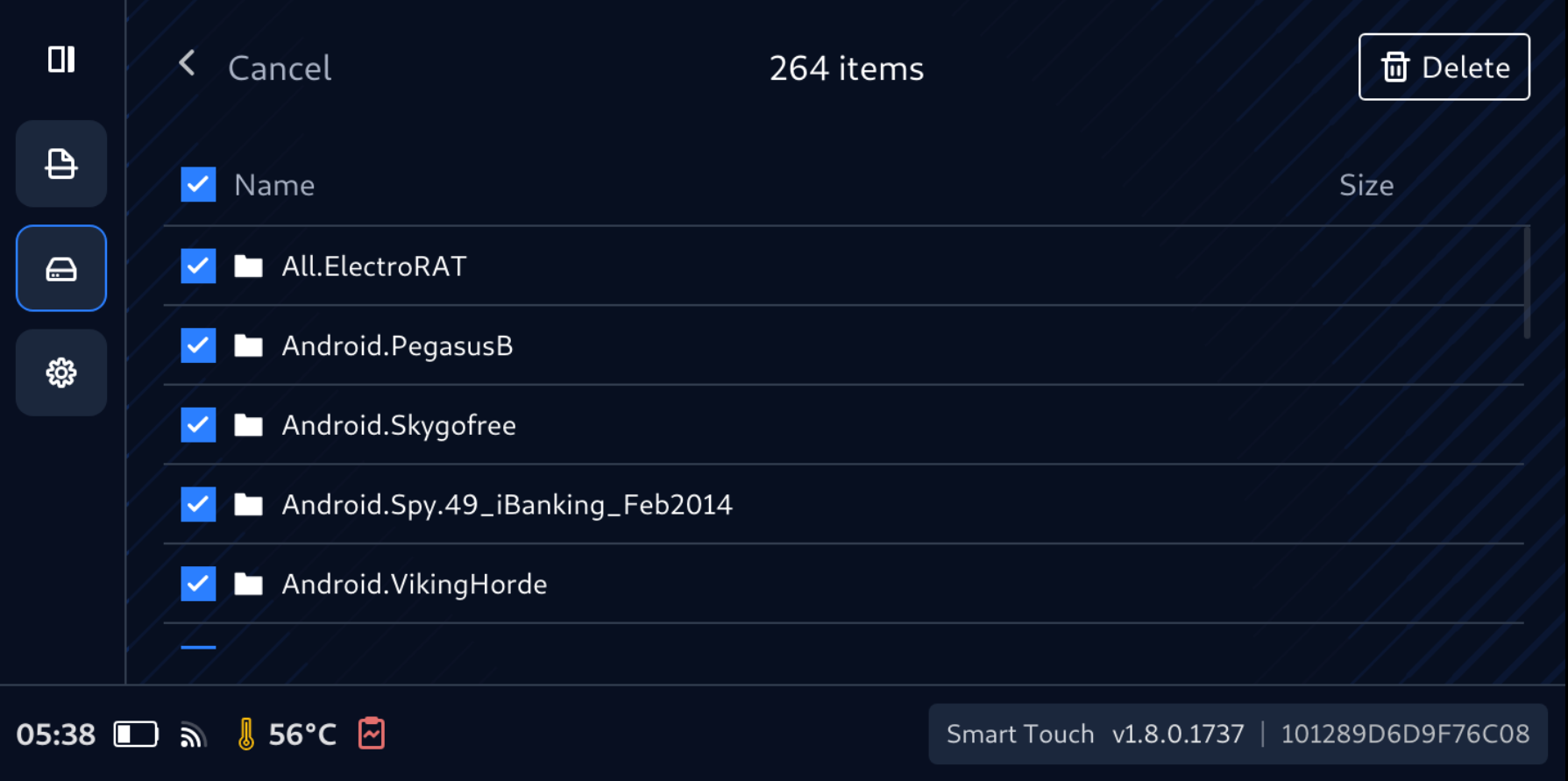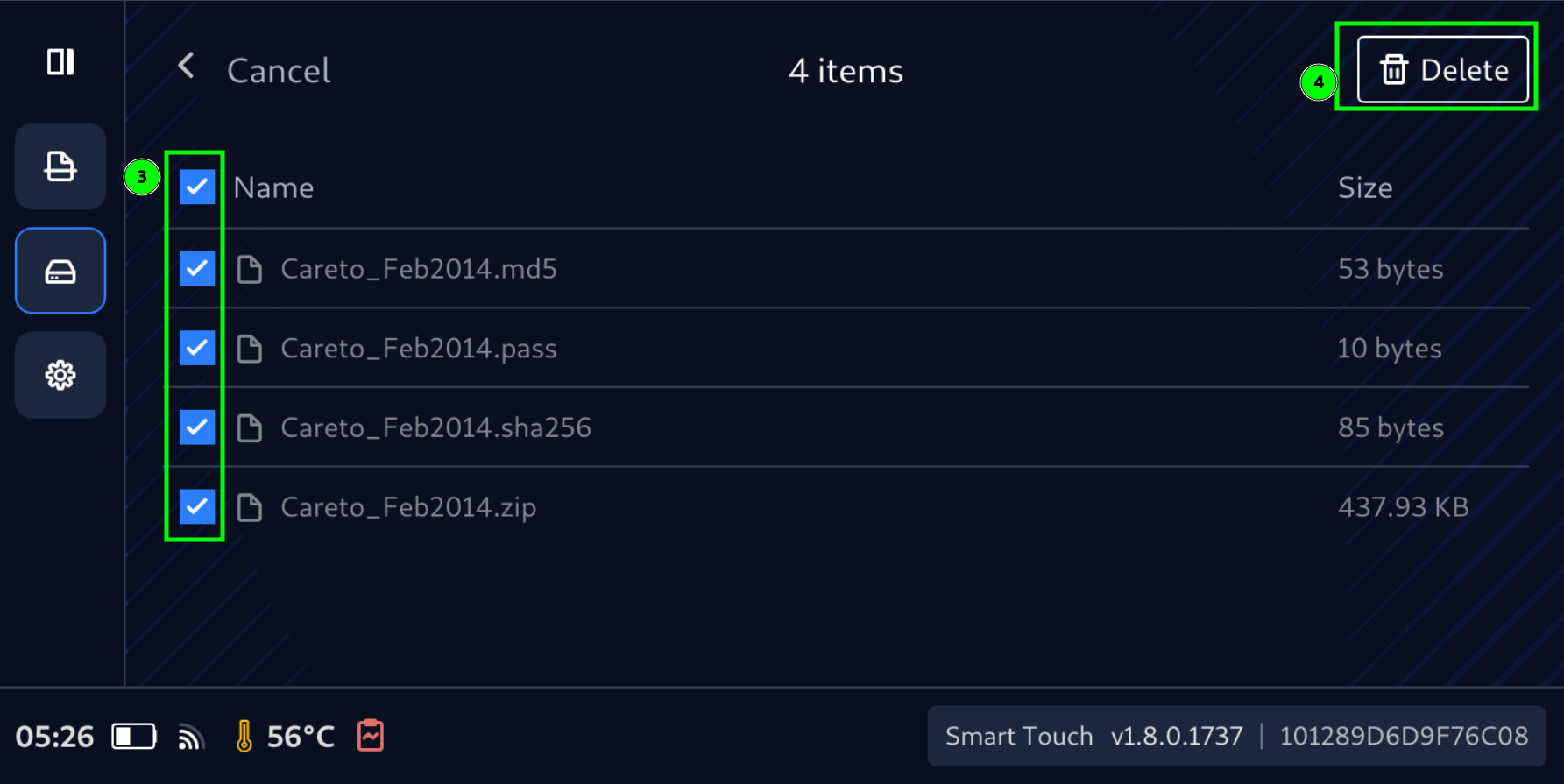 - Select files to delete, then tap Delete button
