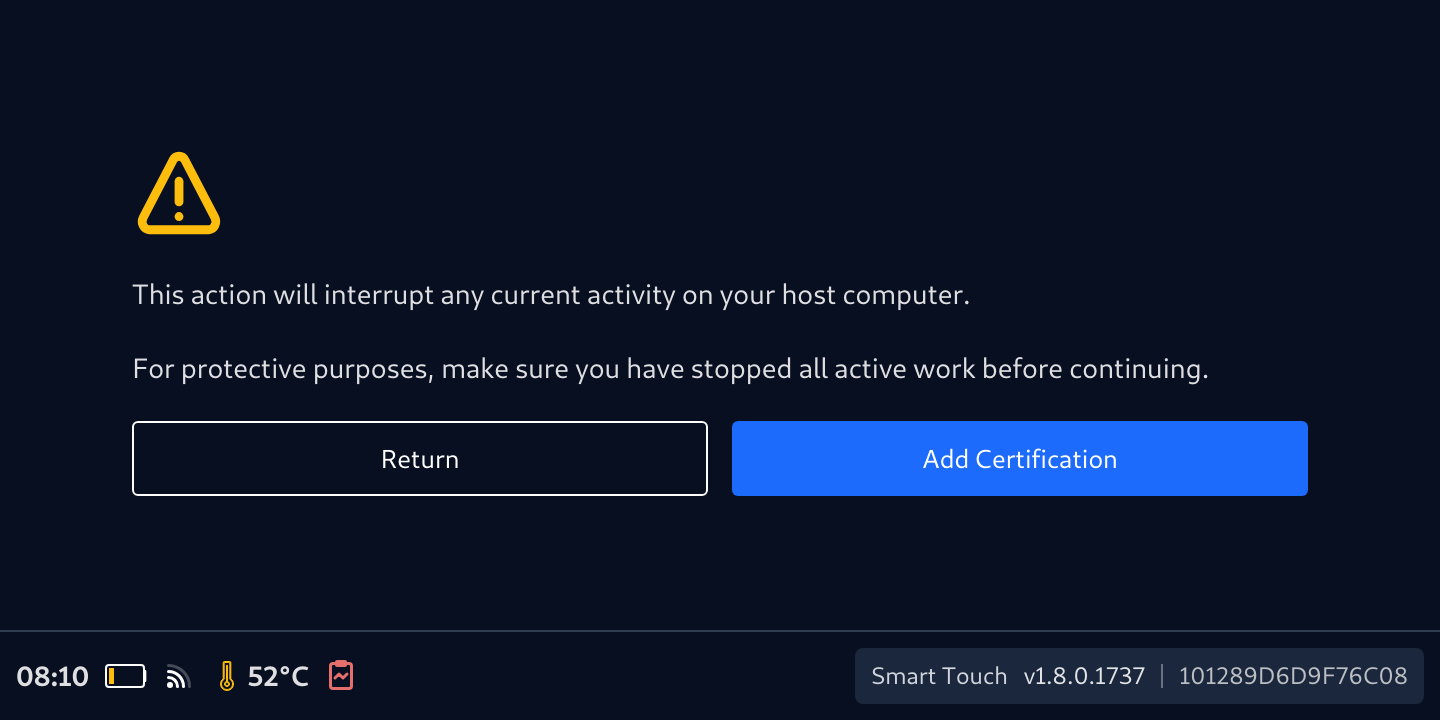 - Tap Add/Replace Certification button again to confirm the acknowledgement