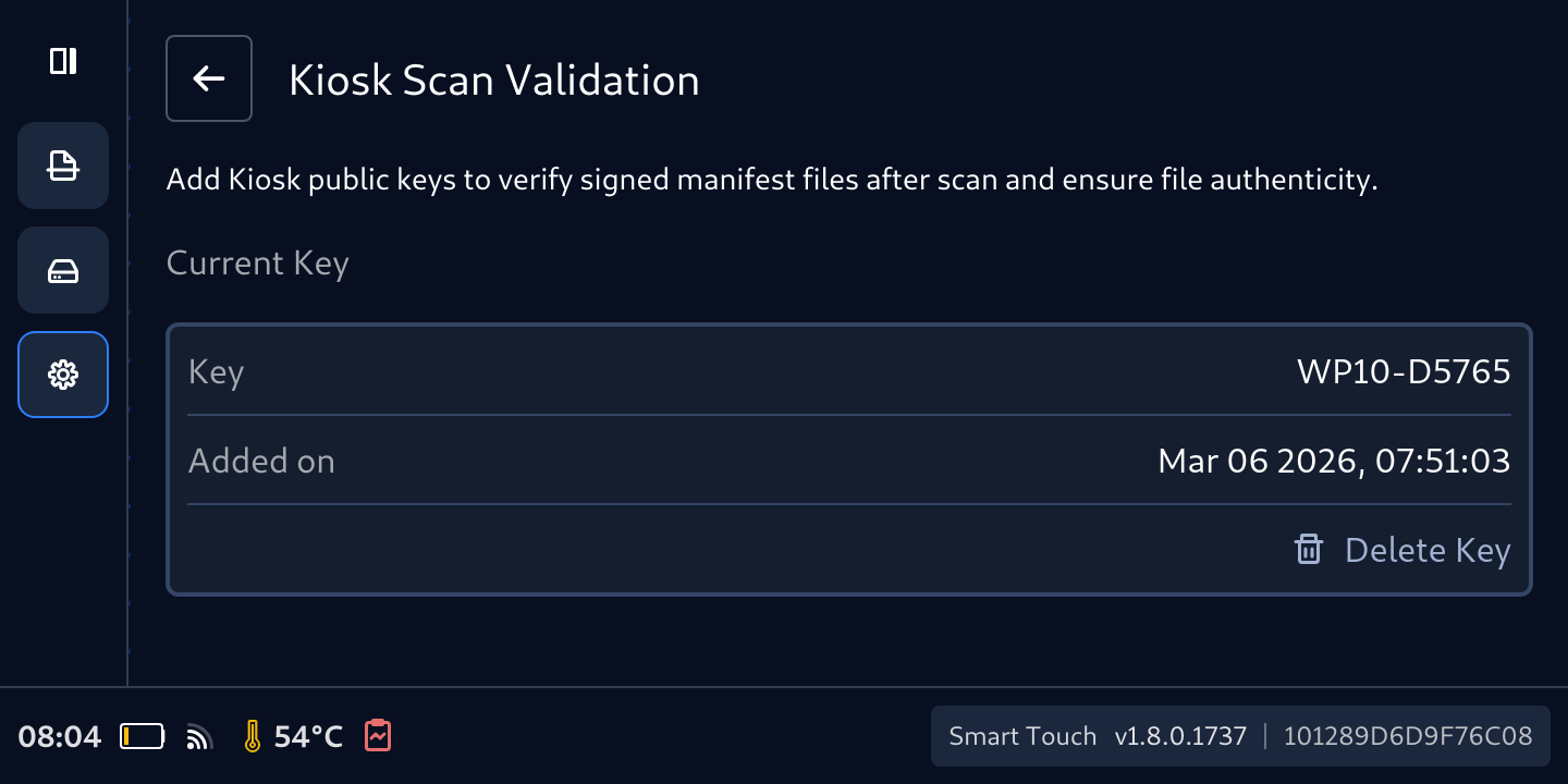 - From Kiosk Scan Validation screen, tap the Delete Key