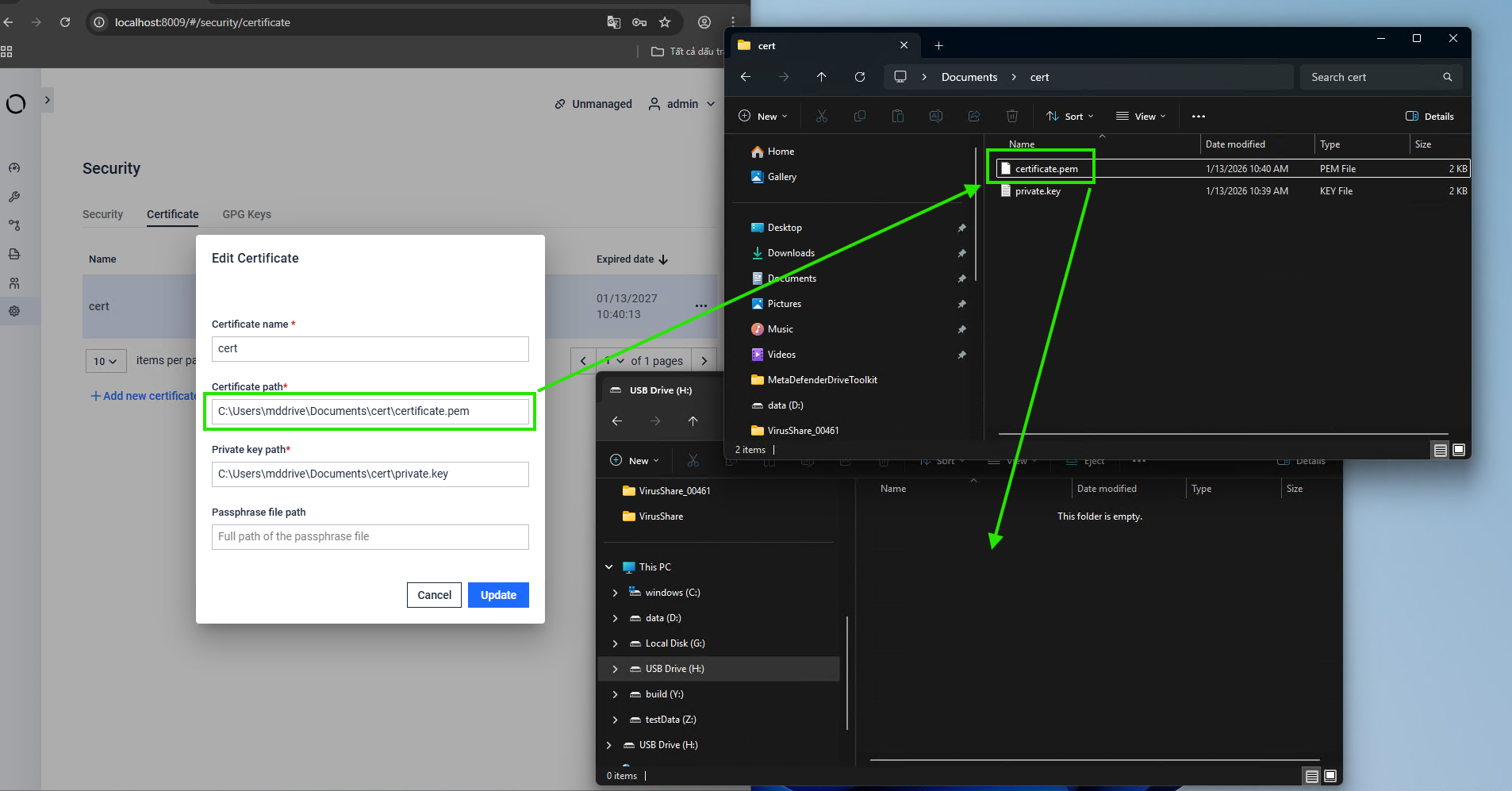 - MetaDefender Drive with Smart Touch will start preparing files with a warning displayed to avoid cross infection because the file stored in Secure FIle Storage have not been scanned yet.