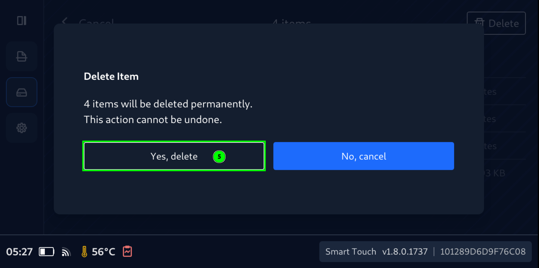 - Confirm Yes, delete to delete selected files permanently