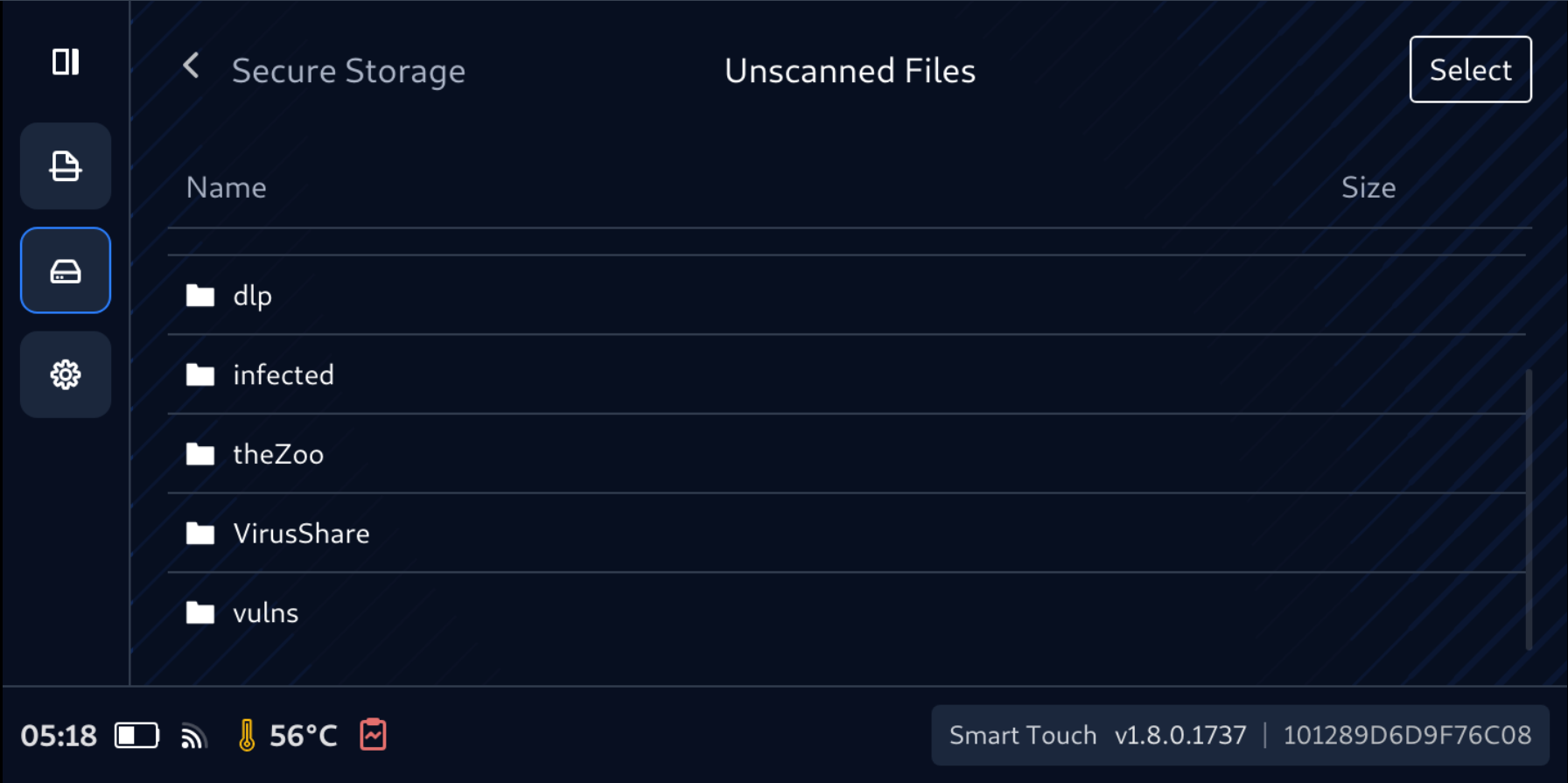 When plugging to a host computer, on its file manager, the Clean files will be made visible in a 32GB storage partition, and the Unscanned and Unsafe files will be hidden.