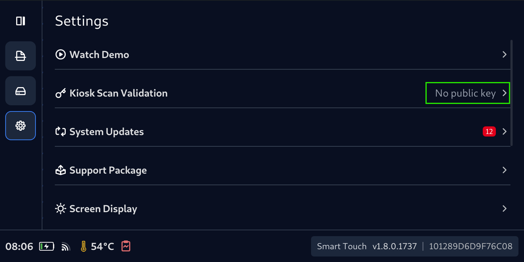 - Tap Kiosk Scan Validation