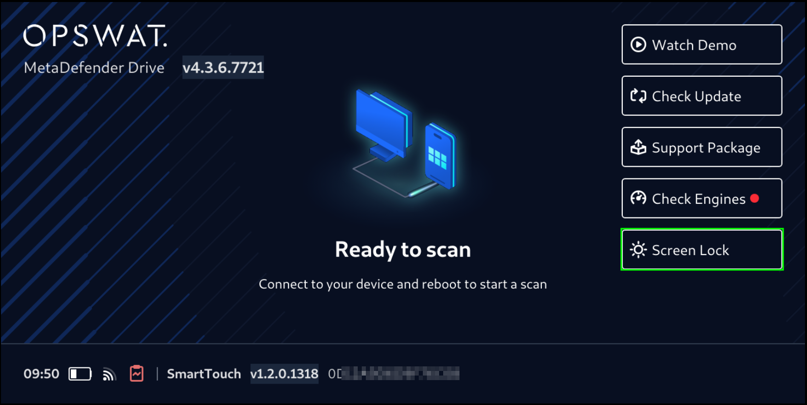 MetaDefender Drive with Smart Touch comes is a mobile form factor that adds flexibility and connectivity to the transient device scanning processes. Similar to other form factors, it ships as an out-of-the-box solution with the latest software and scanning engine versions installed.