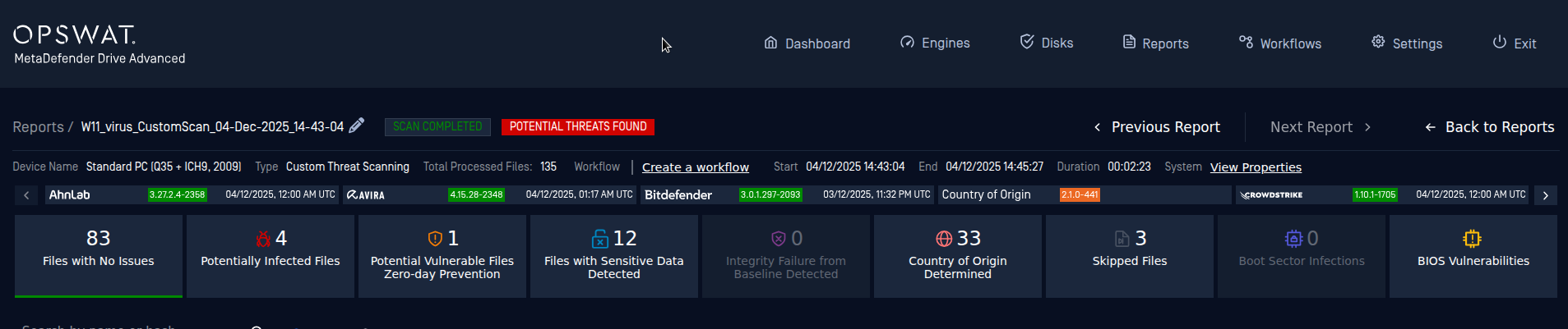 Notice that the result shown in MetaDefender Drive with Smart Touch show the same numbers of findings in MetaDefender Drive for the same scan.