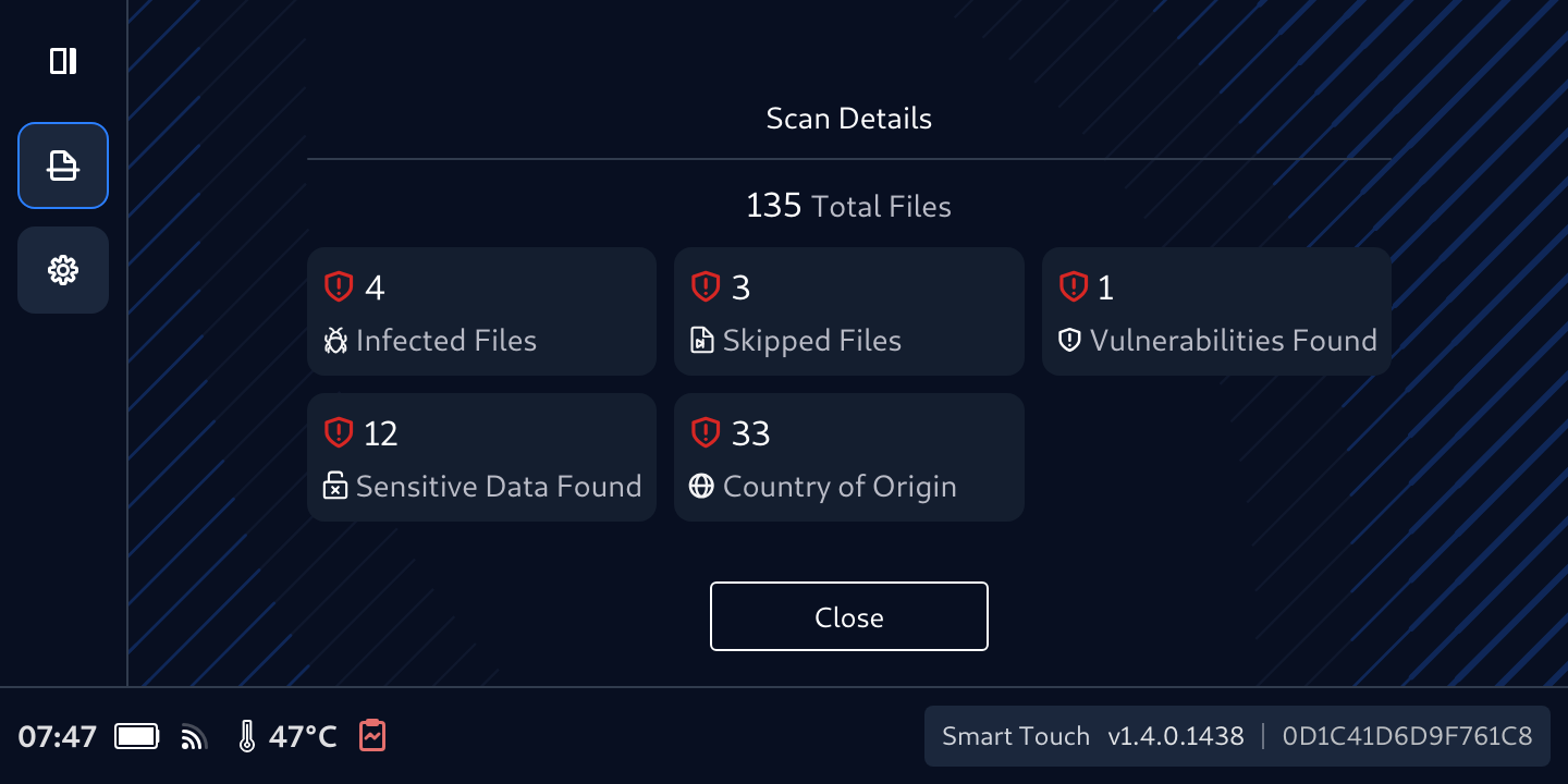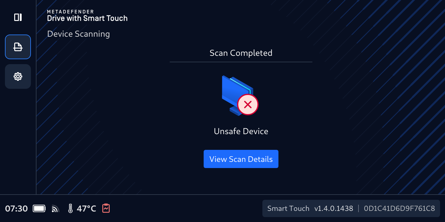 After a scan is complete, the scan results will be displayed on the target system, and MetaDefender Drive with Smart Touch will display Unsafe Device or Safe Device message, depending on the scan result.