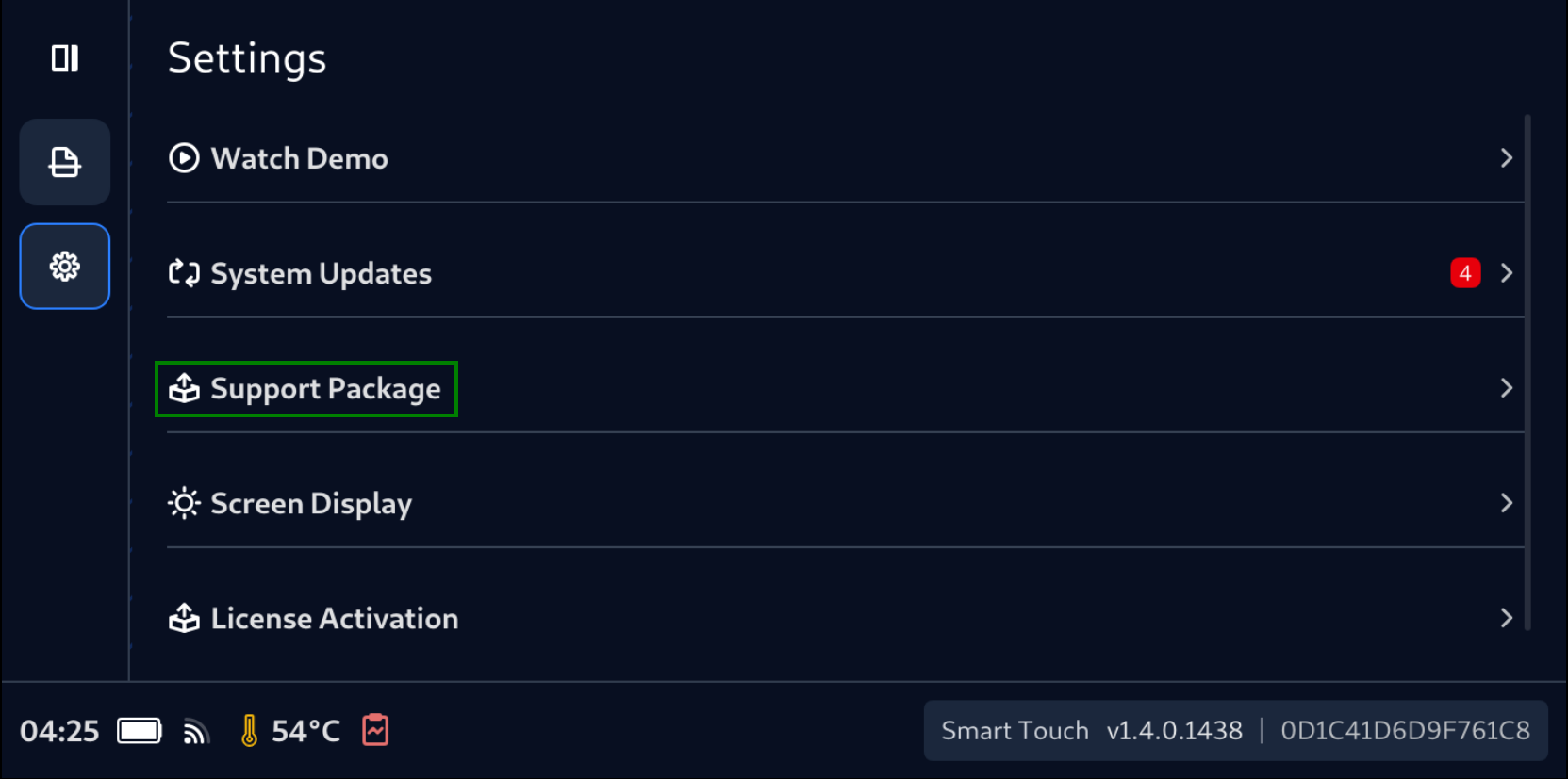 1. Tab Setting icon on the Navigation bar, then tap Support Package.