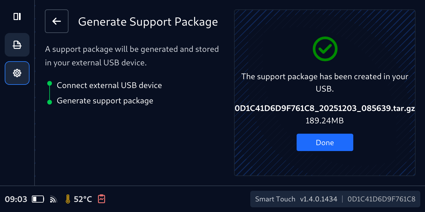 1. Once completed, press Done and remove the USB storage from Smart Touch.
