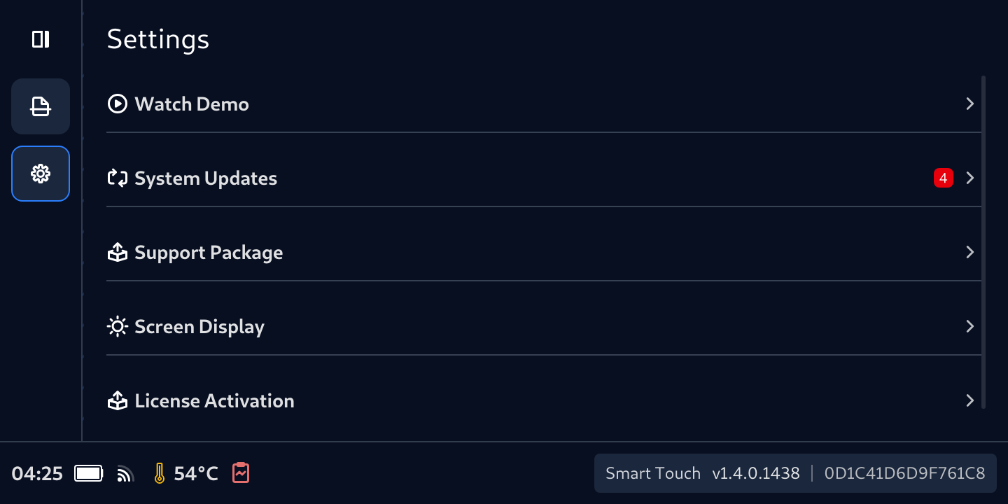 - Notice the red dot displays next to System Updates notifying about any updates available for Smart Touch