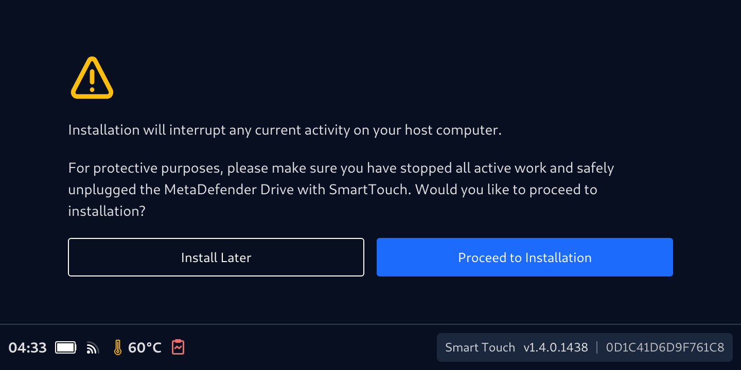 During the update process, MetaDefender Drive will not be ready to perform a scan.