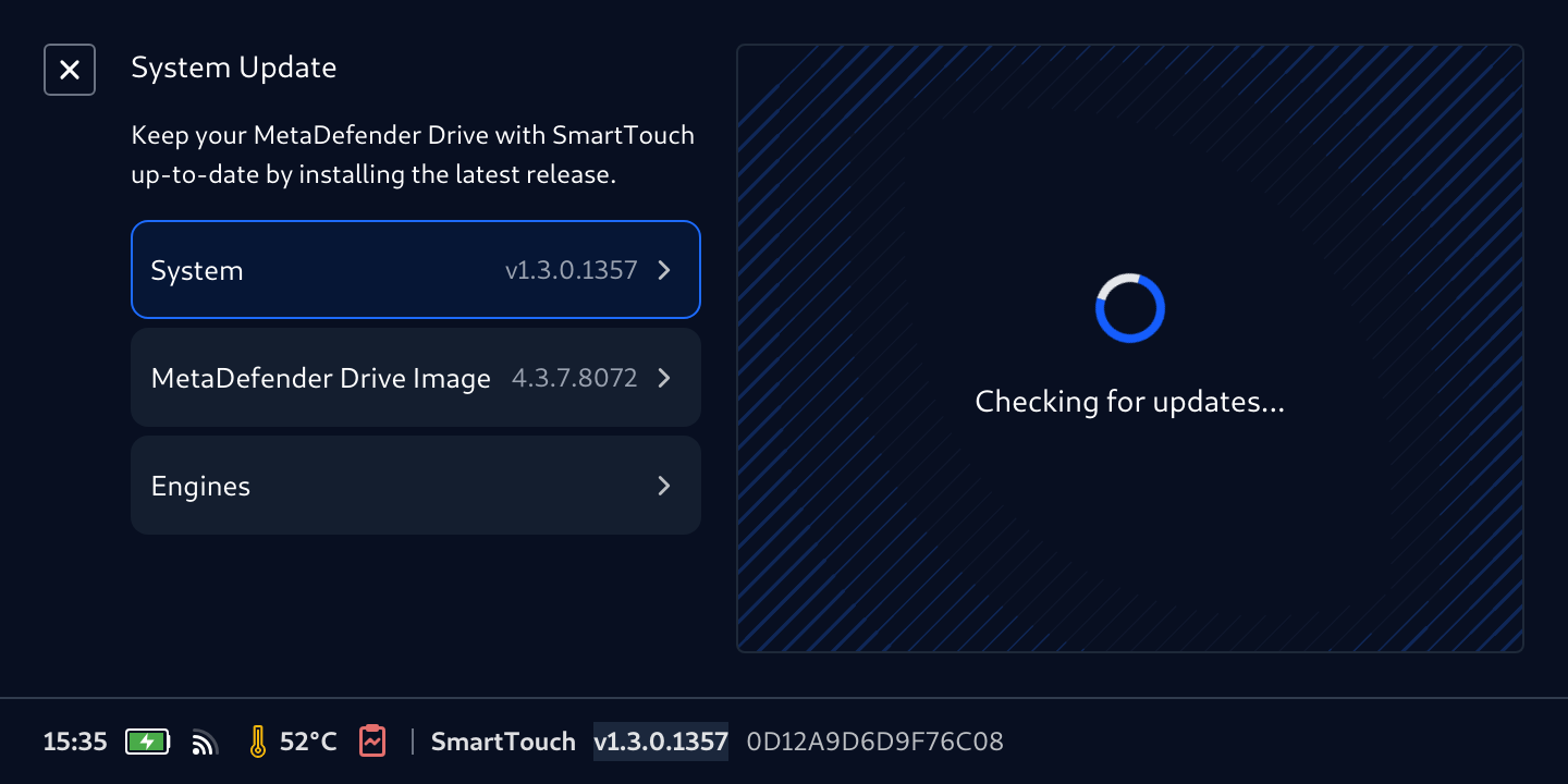 - Wait for MetaDefender Drive with Smart Touch to check for available updates.
