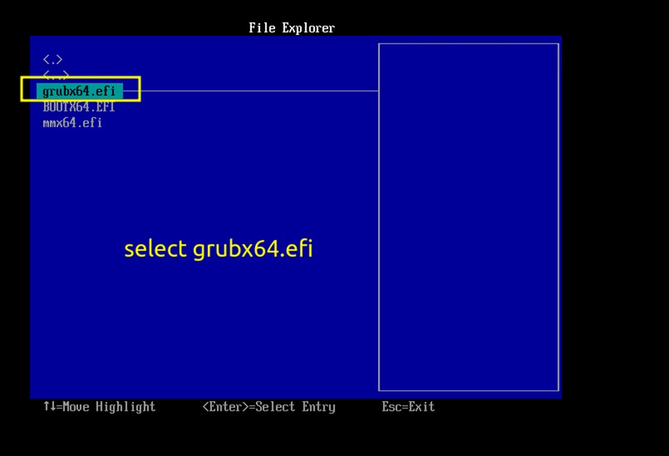 - Select grubx64.efi, then wait for your virtual machine to boot