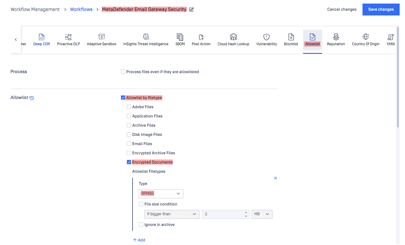 attachments to pass through MetaDefender Email Gateway Security, follow these steps to allowlist the file type in MetaDefender Core: