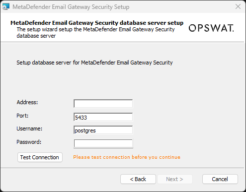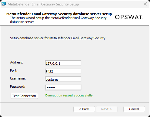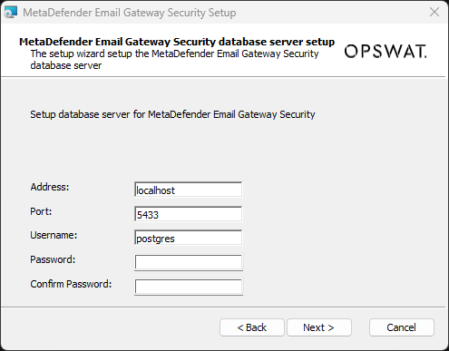 As Email Gateway Security now supports using an external PostgreSQL database, it is now possible to use the PostgreSQL database of MetaDefender Core. For this scenario Email Gateway Security needs to be installed with the External database option and the database has to point to MetaDefender Core's database server.