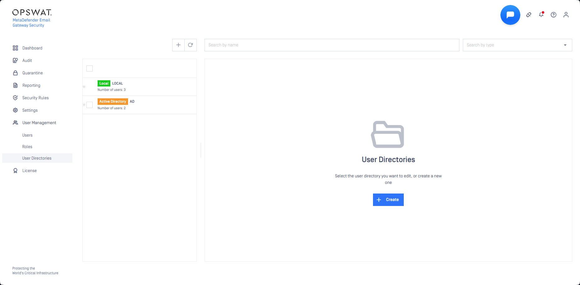 Active Directory type user directories allow users defined in an Active Directory to access Email Gateway Security’s web management console.