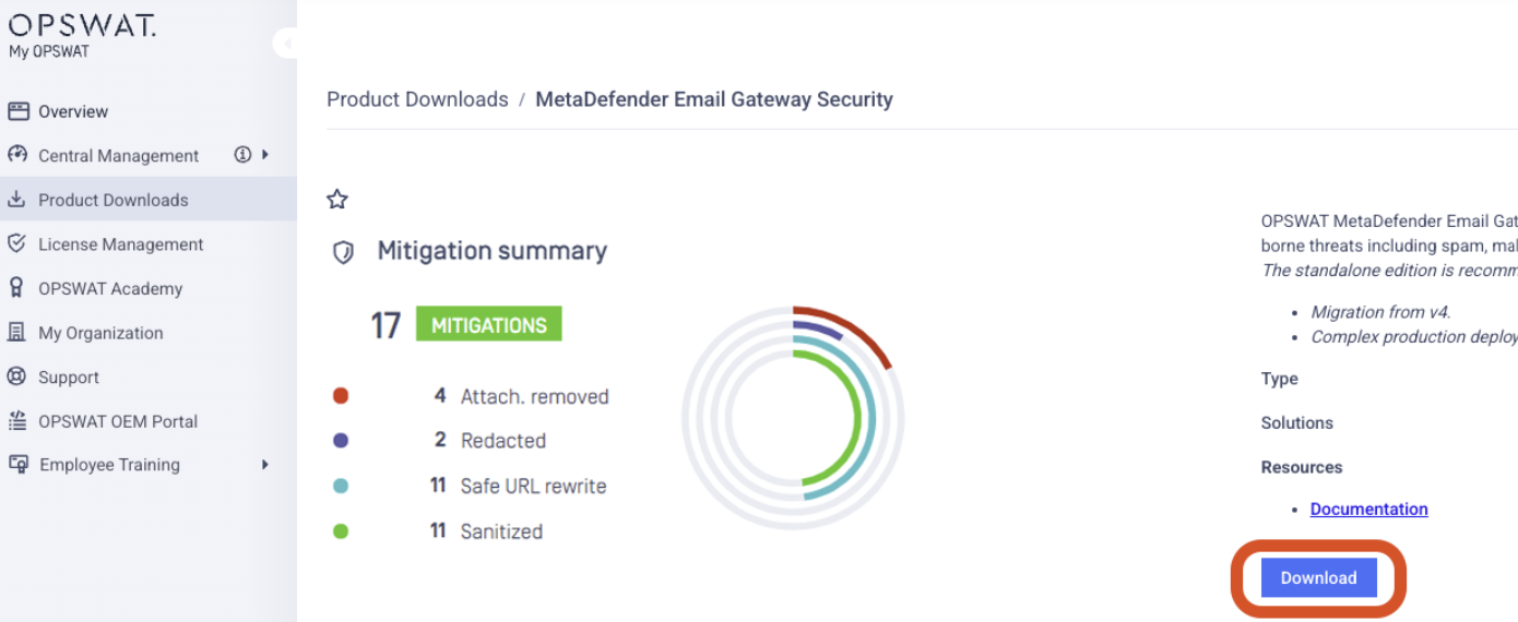 OPSWAT highly recommends that users upgrade to the latest version of MetaDefender Email Gateway Security. Current versions incorporate state-of-the-art features and necessary bug fixes, and are freely available for all license holders to download.