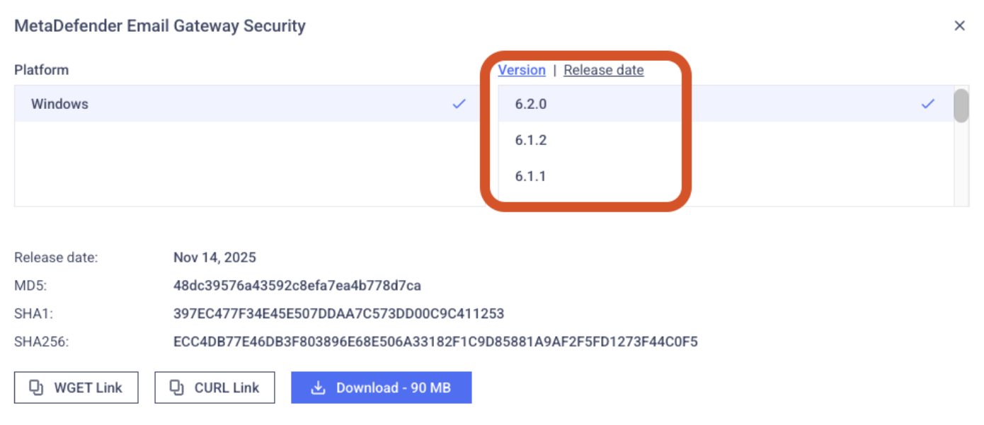 Browse MetaDefender Email Gateway Security Release Notes for details on the latest version, version history, version comparisons and release notes.